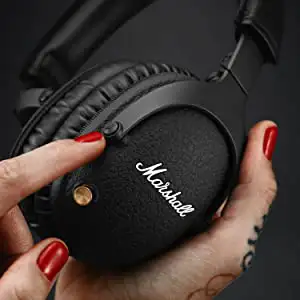 Monitor Bluetooth features black vinyl, the signature Marshall script and brass details. In addition to its rugged good looks, the Monitor Bluetooth features heavy-duty cast metal hinges and an over-ear design that gives it a distinct look and supreme fit.