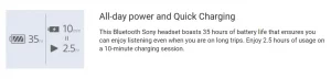 This Bluetooth Sony headset boasts 35 hours of battery life that ensures you can enjoy listening even when you are on long trips. Enjoy 2.5 hours of usage on a 10-minute charging session.